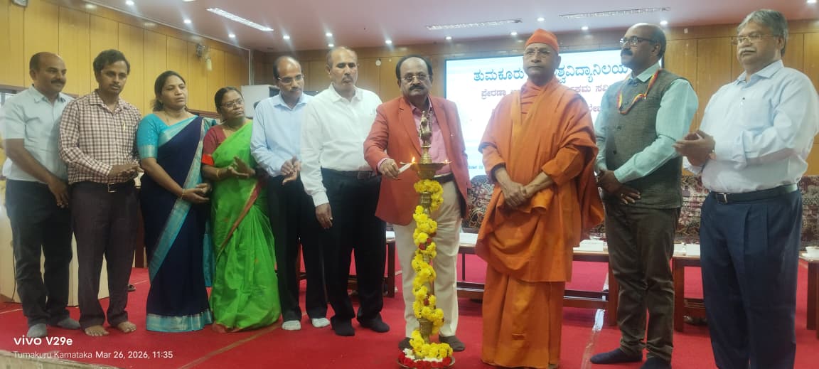 ತುಮಕೂರು ವಿಶ್ವವಿದ್ಯಾನಿಲಯದ ಪ್ರೇರಣಾ ಉಪನ್ಯಾಸ ಕಾರ್ಯಕ್ರಮ ಸಮಿತಿ ಹಾಗೂ ವಿಶ್ವವಿದ್ಯಾನಿಲಯ ವಿಜ್ಞಾನ ಕಾಲೇಜಿನ ಸಹಯೋಗದೊಂದಿಗೆ ನಡೆದ ೨೦೨೫-೨೬ನೇ ಸಾಲಿನ ಪ್ರೇರಣಾ ಉಪನ್ಯಾಸ - ೦೫ ಕಾರ್ಯಕ್ರಮವನ್ನು ಅಖಿಲ ಭಾರತೀಯ ಶರಣ ಸಾಹಿತ್ಯ ಪರಿಷತ್ತಿನ ಅಧ್ಯಕ್ಷರಾದ ಡಾ. ಸಿ. ಸೋಮಶೇಖರ್ ಉದ್ಘಾಟಿಸಿದರು. ಜತೆಯಲ್ಲಿ ಪಾವಗಡದ ಶ್ರೀ ರಾಮಕೃಷ್ಣ ಸೇವಾಶ್ರಮದ ಅಧ್ಯಕ್ಷರಾದ ಸ್ವಾಮಿ ಜಪಾನಂದ ಮಹಾರಾಜ್, ಪರೀಕ್ಷಾಂಗ ಕುಲಸಚಿವರಾದ ಪ್ರೊ. ಮೋಹನ ಹೆಚ್. ಎಸ್., ಡೀನ್ ಪ್ರೊ. ಪಿ. ಪರಮಶಿವಯ್ಯ,ಸಮಿತಿ ಅಧ್ಯಕ್ಷರಾದ ಪ್ರೊ. ಜಿ. ಸುದರ್ಶನ ರೆಡ್ಡಿ, ಪ್ರಾಂಶುಪಾಲರಾದ ಪ್ರೊ. ಶ್ರೀನಿವಾಸ್ ಎಸ್., ಇನ್ನಿತರರು ಇದ್ದಾರೆ.