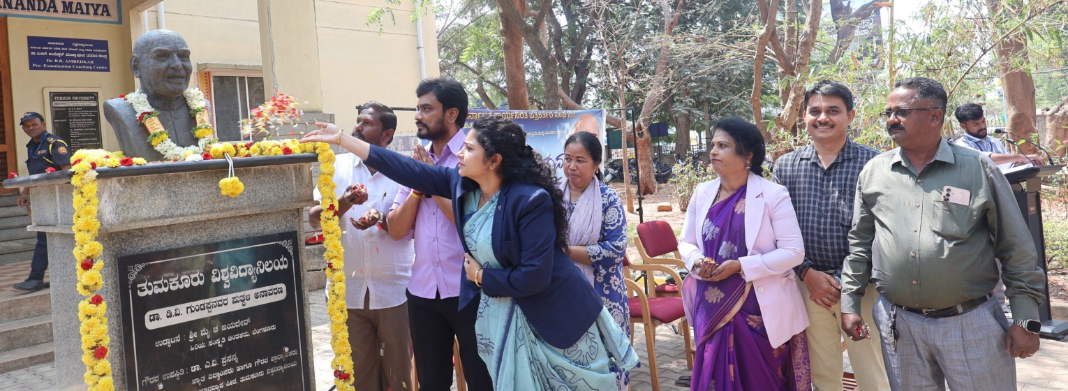 ಡಿವಿಜಿ ಅವರ ಜನ್ಮದಿನಾಚಾರಣೆ ಕಾರ್ಯಕ್ರಮದಲ್ಲಿ ಡಿವಿಜಿ ಪ್ರತಿಮೆಗೆ ತುಮಕೂರು ವಿಶ್ವವಿದ್ಯಾನಿಲಯದ ಕುಲಸಚಿವೆ ನಾಹಿದಾ ಜ಼ಮ್ ಜ಼ಮ್ ಪುಷ್ಪನಮನ ಸಲ್ಲಿಸಿದರು.(17-03-2026)