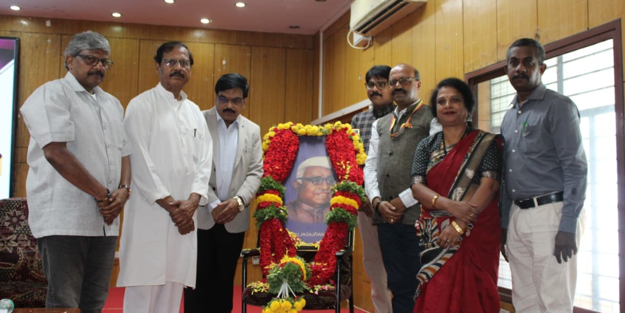ತುಮಕೂರು ವಿಶ್ವವಿದ್ಯಾನಿಲಯದ  ಡಾ. ಬಾಬು ಜಗಜೀವನ್ ರಾಮ್ ಅಧ್ಯಯನ ಪೀಠದ ವತಿಯಿಂದ ಆಯೋಜಿಸಲಾಗಿದ್ದ ಅವರ ೧೧೯ನೇ ಜನ್ಮ ದಿನಾಚರಣೆ ಹಾಗೂ 'ನವಭಾರತ ನಿರ್ಮಾತೃ ಪ್ರಜ್ಞೆ ಮತ್ತು ಸಾಮಾಜಿಕ ನ್ಯಾಯದ ಕಾಯ್ದೆ, ಕೊಡುಗೆಗಳು' ಎಂಬ ಕುರಿತ ಒಂದು ದಿನದ ಕಾರ್ಯಾಗಾರದಲ್ಲಿ ಕರ್ನಾಟಕ ವಿಧಾನ ಪರಿಷತ್ ಮಾಜಿ ಸಭಾಪತಿ ವಿ.ಆರ್. ಸುದರ್ಶನ್. ತುಮಕೂರು ವಿವಿ ಕುಲಪತಿ ಪ್ರೊ. ಎಂ. ವೆಂಕಟೇಶ್ವರಲು, ಚಿಂತಕ ಆರ್. ಲೋಕೇಶ್, ಪರೀಕ್ಷಾಂಗ ಕುಲಸಚಿವರಾದ ಡಾ.ಮೋಹನ್ ಎಚ್. ಎಸ್., ಡಾ. ಬಾಬು ಜಗಜೀವನ್ ರಾಮ್ ಅಧ್ಯಯನ ಪೀಠದ ಸಂಯೋಜಕರಾದ ಡಾ.ದ್ವಾರಕನಾಥ್ , ಪ್ರಾಂಶುಪಾಲರಾದ ಡಾ. ಜಿ. ದಾಕ್ಷಾಯಿಣಿ ಅವರು ಬಾಬೂಜೀ ಅವರ ಭಾವಚಿತ್ರಕ್ಕೆ ಪುಷ್ಪಾರ್ಪಣೆ ಮಾಡಿದರು. (07-04-2026)